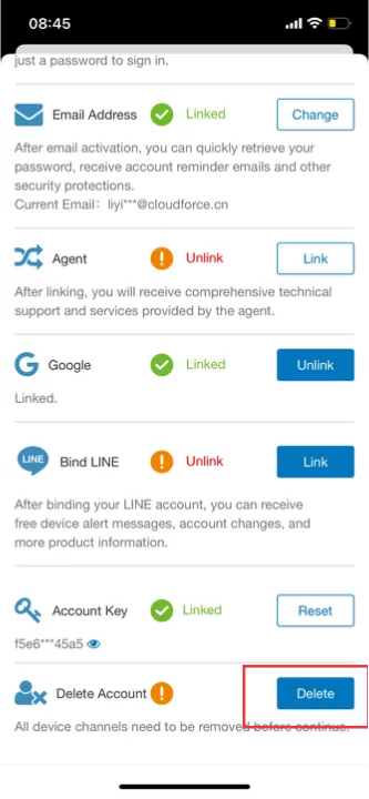 Before deleting your account, please make sure to unbind all devices associated with your account.